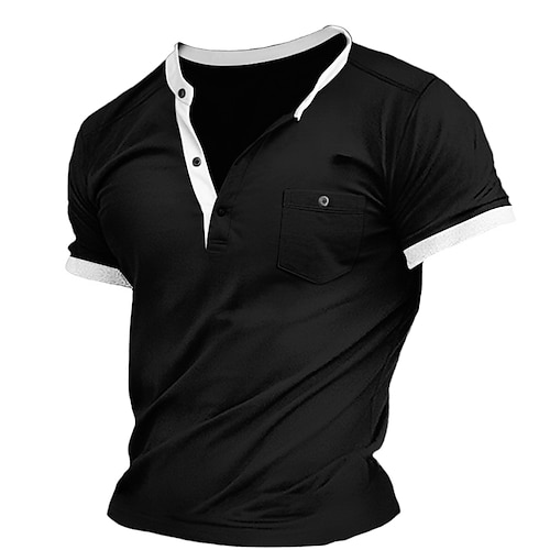 Per uomo Camicia Henley T-shirt Color Block Henley Esterno Informale Manica corta Pulsante Tasche Abbigliamento Di tendenza Originale Comodo