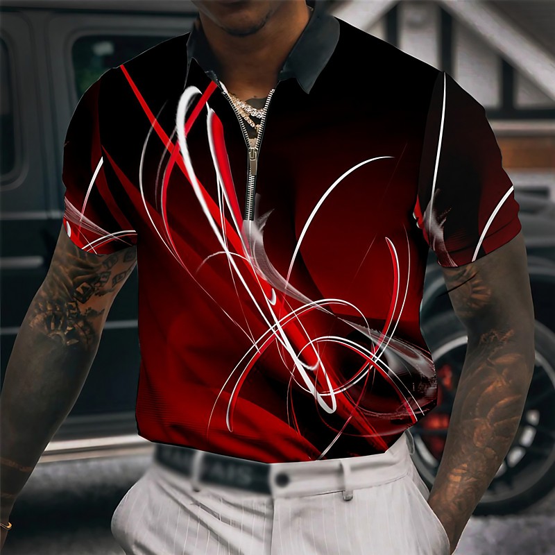 Men's Polo Shirts Big and Tall Gradient Turndown Zipper Short Sleeves Summer Spring Fashion Designer Casual Breathable Outdoor Street Tops