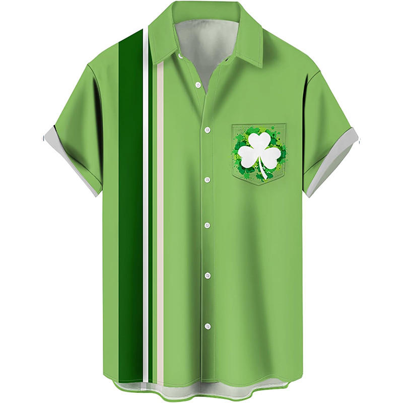 St. Patrick Men's Shamrock Clover Shirt Bowling Shirt Button Up Shirt Short Sleeve Casual Casual Athleisure Summer Spring Turndown Pocket Green