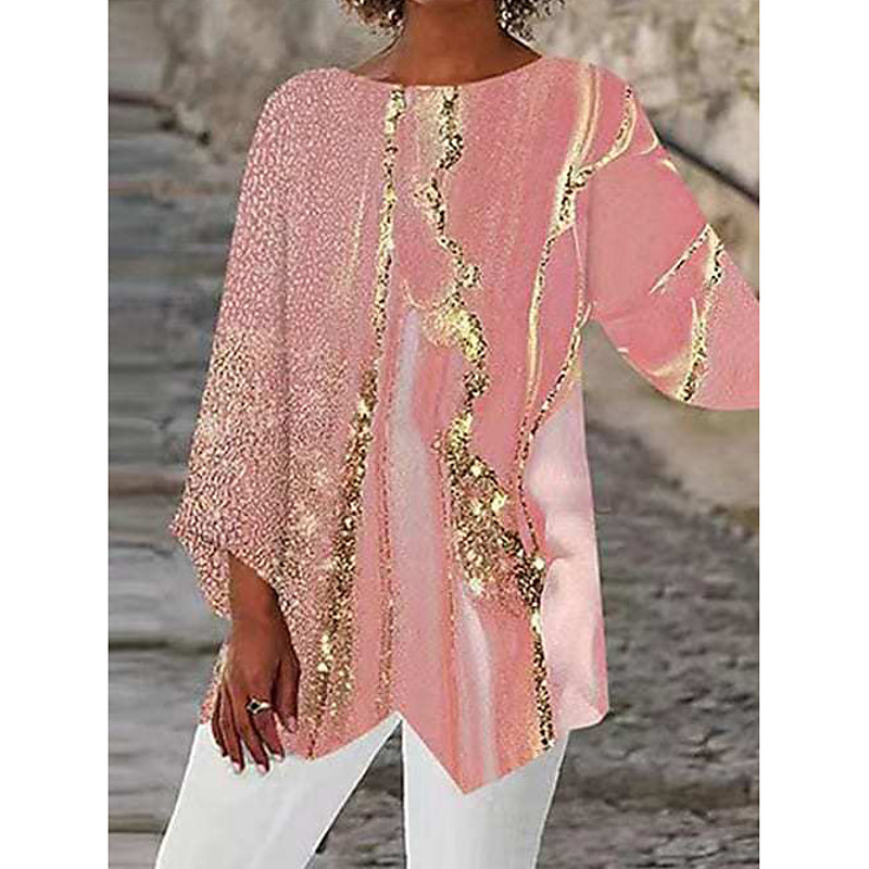 Women's Blouse Print Abstract Daily Stylish Long Sleeve Crew Neck Regular Tops Daily Holiday Print Asymmetric Hem Pink Summer Spring