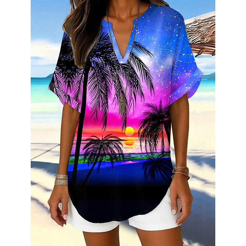Women's Boho Shirt Floral Graphic Leaf Elegant Bohemia Daily Short Sleeve Regular Tops Daily Holiday Yellow Pink Blue Summer Spring