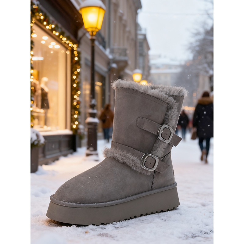 Women's Brown Faux Fur Lined Winter Boots – Buckle Detail, Cozy Warmth and Platform Sole for Casual Outdoor, Snowy Days and Winter Fashion