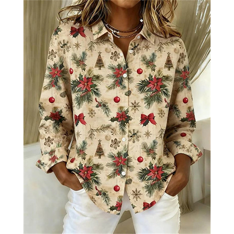 Christmas Women's Shirt Blouse Plaid Santa Claus Christmas Tree Elegant Vintage Party Long Sleeve Shirt Collar Regular Tops Daily Work Holiday Ruched Patchwork Buttons Blue Red Orange Green Beige