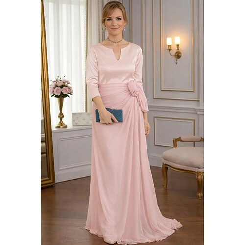 Linea ad A Abito Lunghezza al pavimento Abito da invitata a nozze Abito da sera Abito da cerimonia per signora Manica 3/4 Scollo a V Elegante Semplice Casual Formale Ospite di nozze Derby del Kentucky