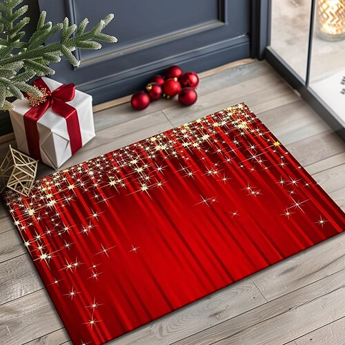 Zoccolo Natalizio Rosso Con Design Di Luci Scintillanti Tappeto D'Entrata Morbido Antiscivolo Tappeto D'Entrata In Faux Cashmere Decorazione Feste Interna Estera 24x36 Pollici