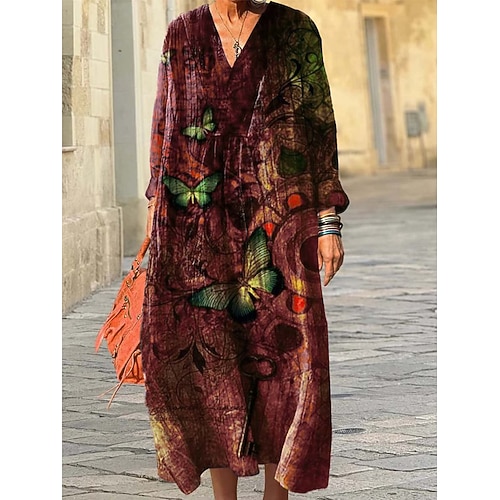 Per donna Abito Midi Vestito Estivo Abito a trapezio Vacanza Casual Boho Uscire Spiaggia Vestibilità comoda Grafico Geometrico Manica Lunga Scollo a V Rosso Viola Verde Grigio scuro Primavera Autunno