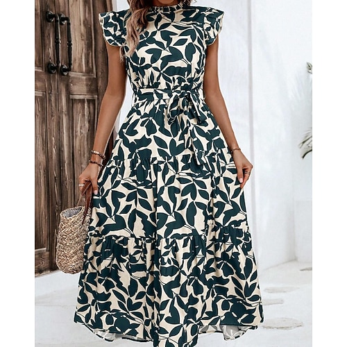 Per donna Abito Midi Abito Floreale Abito Stampato Moda Moderno All'aperto Vacanza Uscire Vestibilità comoda Floreale Senza Maniche Collo alla coreana Arancione Marrone Verde Blu scuro Estate