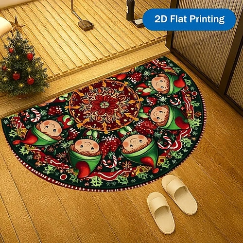 zerbino natalizio semicircolare, zerbino di benvenuto per le feste, resistente, antiscivolo, per l'ingresso, resistente allo sporco, per la casa, il portico, la camera da letto, l'arredamento festivo,