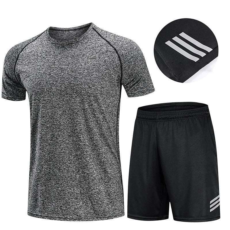Men's Workout Suits 2 Piece Sports Set Solid Colored Clothing Suit Summer Black WhiteBlack Basketball Running Yoga High Waist Quick Dry Short Sleeve Sport Activewear Micro-elastic Regular Fit