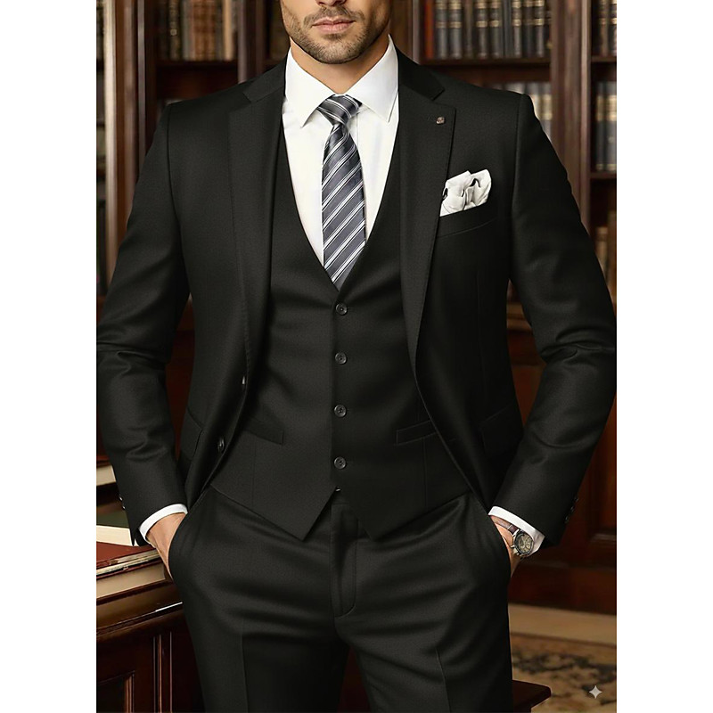 Men's Wedding Party Business Suits Notch Lapel Black Burgundy Daily Formal Solid Colored Slim Fit 3 Piece Single Breasted Two-buttons