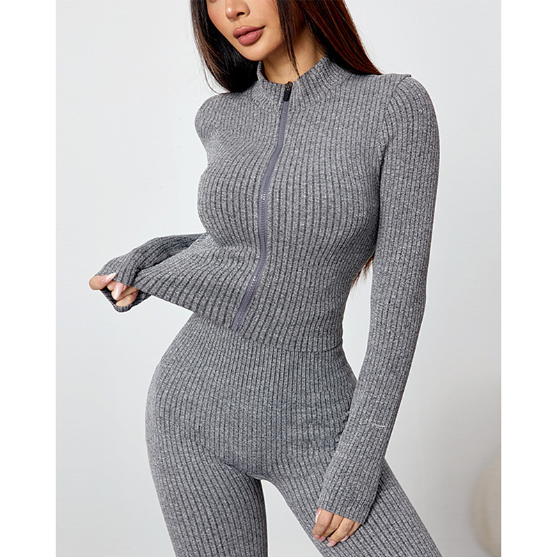 Women's Yoga Suit 2 Piece Workout Set Solid Color Clothing Suit Fall Dark Grey Black Athletic Sports Pilates High Waist Tummy Control Long Sleeve Sport Activewear