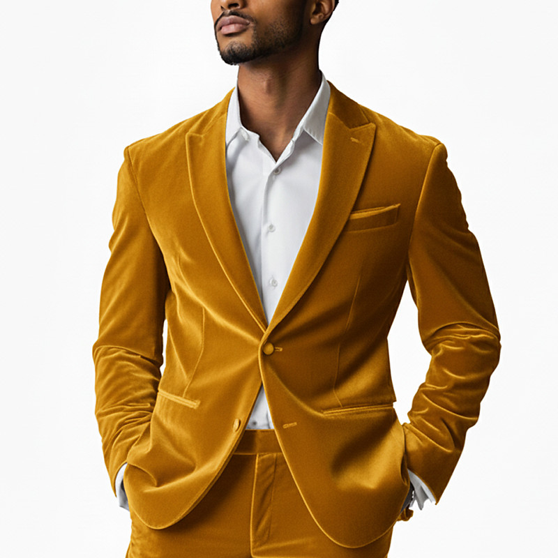 Men's Christmas Casual Party Suits Peaked Lapel Yellow Burgundy Christmas Party Solid Colored Tailored Fit 2 Piece Single Breasted Two-buttons