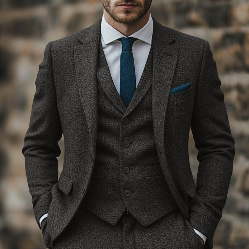 Men's Business Casual Tweed Suits Notch Lapel Black Light Grey Business Formal Solid Colored Tailored Fit 3 Piece Single Breasted Two-buttons