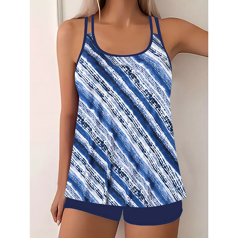 Women's Tankini 2 Piece Swimsuit Boy Leg Tummy Control High Waist Slim Backless Vacation Beach Wear Geometric Striped Halter Neck Sleeveless Bathing Suits