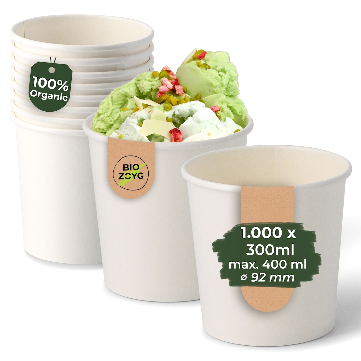 BIOZOYG 1000 Stück Eisbecher Pappe 300 ml weiß - umweltfreundlich, recycelbar, plastikfrei - Joghurtbecher, Papierbecher