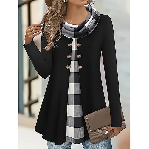Per donna Blusa Plaid Elegante Casual Manica Lunga Scollo a Cascata Top Regolari Quotidiano Bottoni Stampato Bianco Rosso Blu Verde Cachi Primavera Autunno Inverno