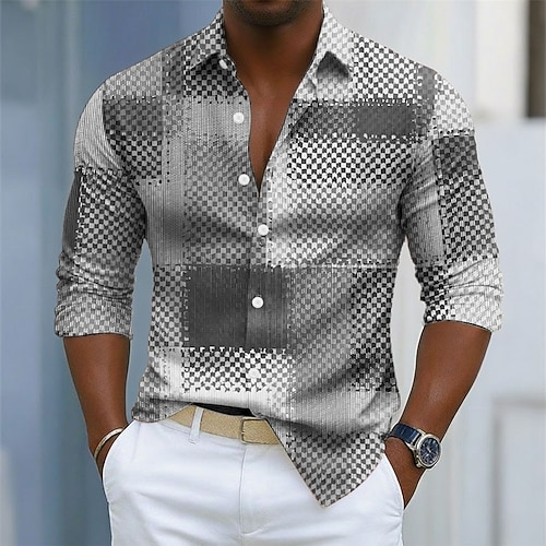Per uomo Geometrico Blocco di colori Motivi a griglia / plaid Camicia Camicia con Bottoni Manica Lunga Moda Casual All'aperto Abbigliamento Quotidiano Primavera Autunno Collo ripiegato Stampa 3D