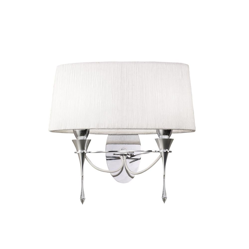 Lucca Wall Light Switched 2 Light E27 Polished Chrome With White Shade & Clear Crystal Mantra