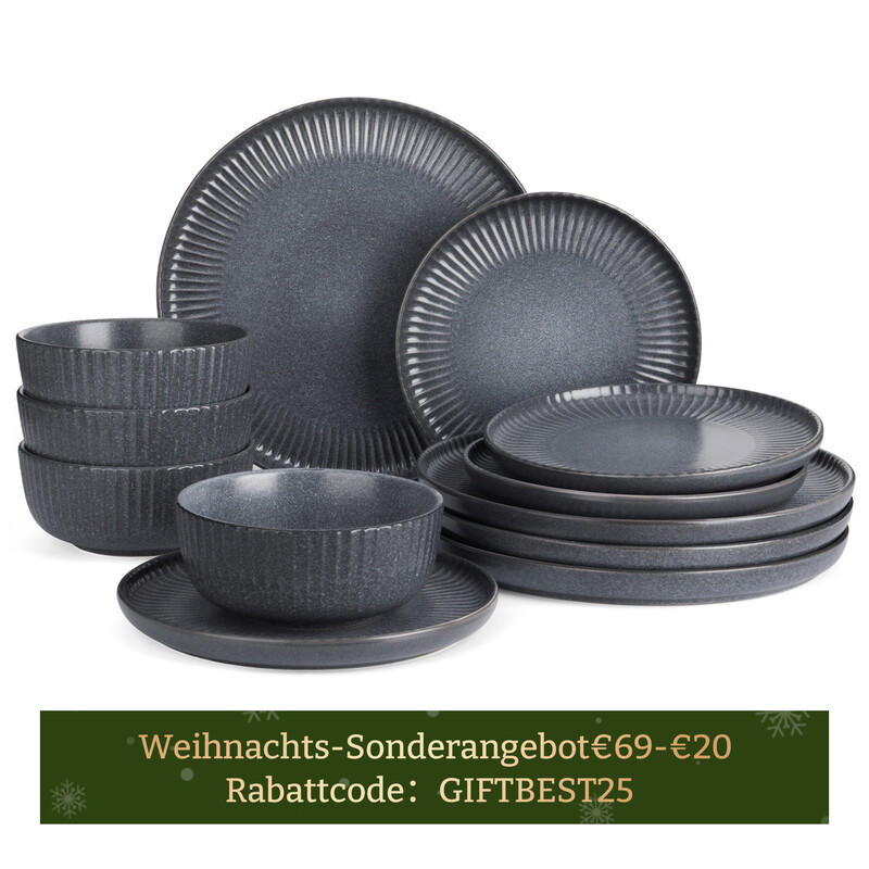 [Rabattcode: GIFTBEST25 €69-€20] Richmount Starlight 12-tlg. Geschirrset mit strukturiertem Rand für 4 Personen, Mattgrau, modernes Essgeschirr