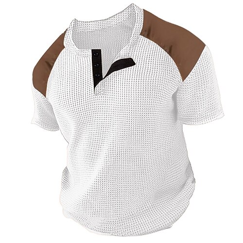 Per uomo Camicia Henley Waffle T-shirt Tinta unica Henley Esterno Informale Manica corta Pulsante Abbigliamento Di tendenza Originale Comodo