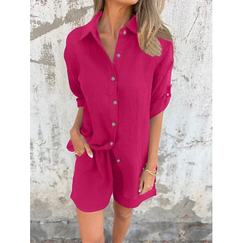 Per donna Attivo Essenziale Set di biancheria in cotone Manica Corta Colletto a Camicia Tinta unica Patchwork Casual Quotidiano Nero Blu Fucsia Estate Vestibilità regolare