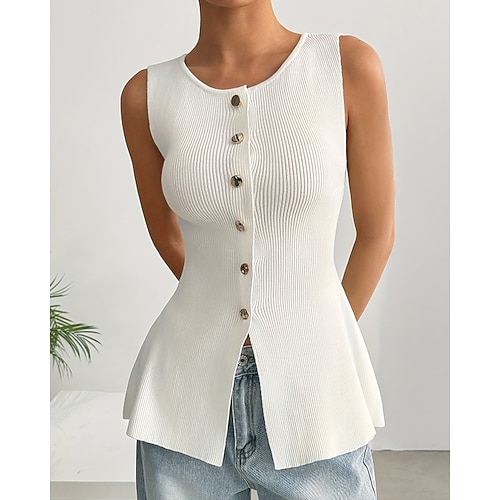 Per donna Felpa Gilet Streetwear Casual Tinta unica Girocollo Bottoni Lavorato a maglia Senza Maniche Top Regolari Maglia Quotidiano Uscire Weekend Bianco Giallo Primavera Autunno