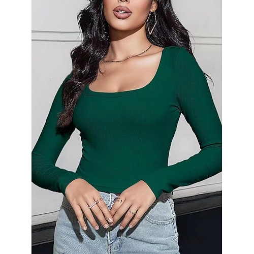 Per donna Maglietta Tinta unica Elegante Casual Manica Lunga Girocollo Top Regolari Quotidiano Patchwork Stampato Verde salvia Rosso Blu Viola Verde Estate Autunno Inverno