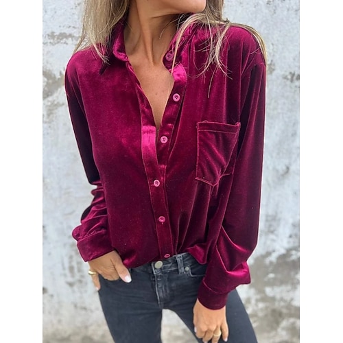 Per donna Blusa Tinta unica Elegante Casual Manica Lunga Colletto a Camicia Top Regolari Quotidiano Tasca Bottoni Vino Verde militare Viola Marrone Primavera Autunno Inverno