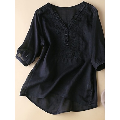 Per donna Blusa Tinta unica Elegante Casual Mezza Manica Scollo a V Top Regolari Quotidiano Ricamato Blu Nero Bianco Rosa Blu marino Estate Primavera