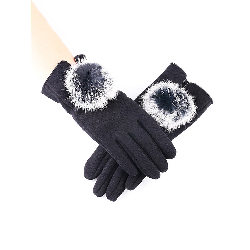Women's Christmas Touchscreen Gloves with Faux Rabbit Fur Pom Poms, Warm Polyester Fabric, Multiple Colors, Perfect for Winter Fashion and Holiday Gifts