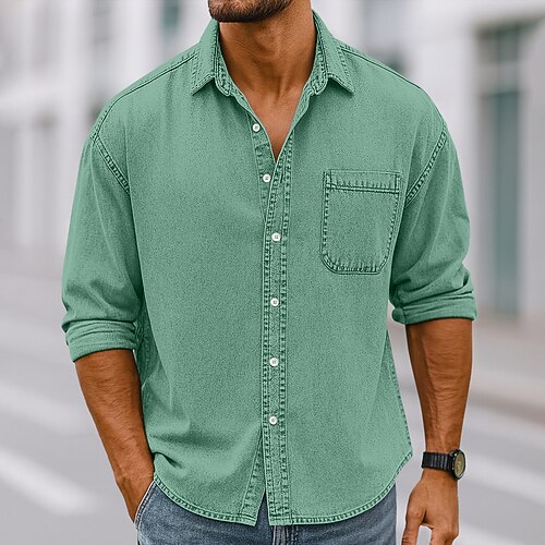 Per uomo Camicia Camicia casual Camicia vintage Camicia con Bottoni Nero Verde chiaro Vino Blu marino Blu Manica Lunga Semplice Bavero Casuale Uscire Tasca Abbigliamento Vintage Moda Retrò Vintage