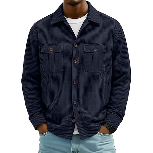 Per uomo Camicia Camicia casual Camicia di Velluto a Coste Camicia con Bottoni Blu Nero Vino Blu marino Verde Manica Lunga Tinta unica Bavero Casuale Quotidiano Tasca Frontale Abbigliamento Caldo
