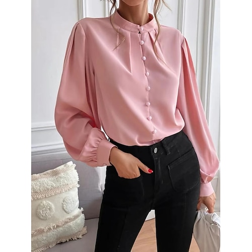 Per donna Camicia Tinta unica Elegante Essenziale Casual Manica Lunga Colletto a Camicia Top Regolari Quotidiano Volant Bottoni Nero Bianco Giallo Rosa Vino Estate Primavera Autunno