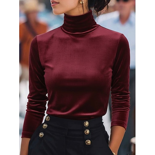 Per donna Maglietta Tinta unica Grafico Elegante Vintage Moda Manica Lunga Dolcevita Top Regolari Quotidiano Uscire Weekend Stampato A Strati Vino Blu Reale Oro Verde Autunno Inverno