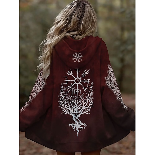 Per donna Felpe con cappuccio Grafico Tribale Moda Casual Manica Lunga Con Cappuccio Top Regolari Streetwear Abbigliamento Quotidiano Cerniera Tasca Stampato Bianco Vino Verde Grigio Primavera Autunno