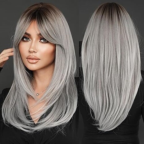 Perücke mit Pony, lange Perücken für Frauen, geschichtete, hitzebeständige Kunsthaarperücken für den täglichen Gebrauch