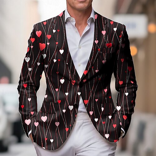 San Valentino Per uomo Cuore Giacca blazer Cappotto Di tendenza Confortevole Traspirante Artistico Casual Abbigliamento da sera Festival Tasca Stampa 3D Bottoni Tutte le stagioni Dentellato Manica