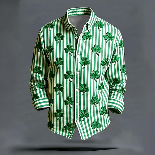 Festa di San Patrizio Per uomo Trifoglio A righe Camicia Camicia a nido d'ape Camicia casual Manica Lunga Moda Casual Ferie Estate Primavera Collo ripiegato Stampa 3D Testurizzato Camicie con bottoni