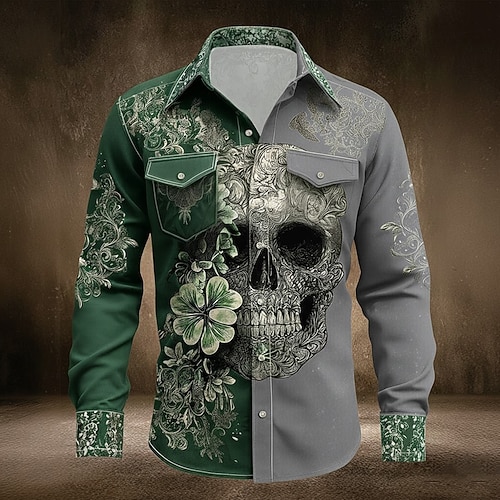 Festa di San Patrizio Per uomo Paisley Teschio Trifoglio Camicia Camicia con Bottoni Manica Lunga Vintage Retrò Feste Ferie Primavera Autunno Collo ripiegato Stampa 3D Due tasche anteriori Camicia