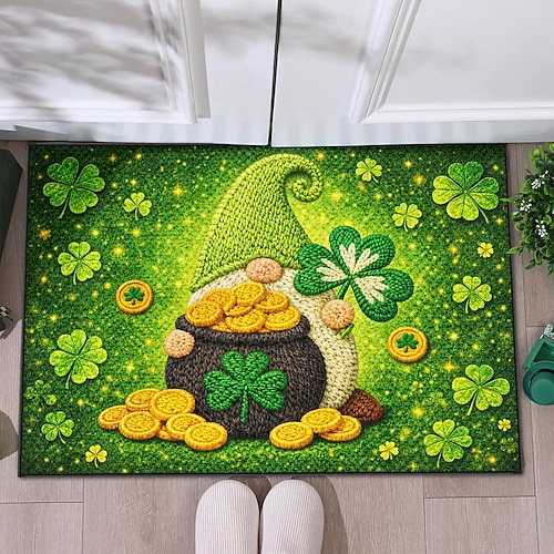 zerbino di San Patrizio con stampa piatta 2D raffigurante uno gnomo con pentola d'oro e trifogli su sfondo verde scintillante