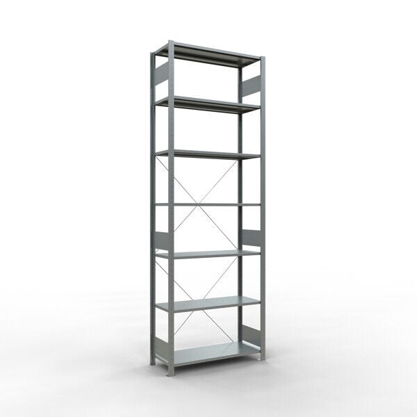 SCHULTE Lagertechnik Grundregal, Fachbodenregal Stecksystem MULTIplus150, 3000 x 1000 x 400 mm (HxBxT), 7 Fachböden, Kreuzstrebe, verzinkt