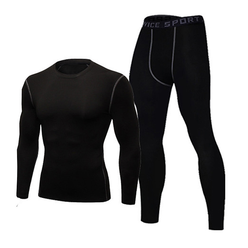 Men's Tracksuit Jogging Suit 2 Piece Solid Colored Base Layer Compression Shirt and Pants Athletic Clothing Set Spring Gray Black Black Gym Workout Jogging Running Soft Breathable Long Sleeve Sport