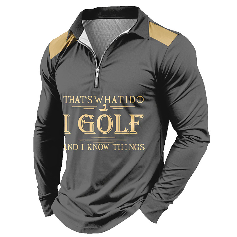 Men's Golf Long Sleeve Quarter-Zip Polo Shirt I Golf And I Know Things Humorous Graphic Tee