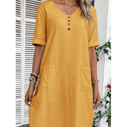 Per donna Abito Midi Abiti in cotone e lino Abito a Tubino Vestito Casual Elegante Moda Moderno Quotidiano Vacanza Uscire Vestibilità comoda Semplice Manica 3/4 Girocollo Giallo Rosa Rosa Azzurro