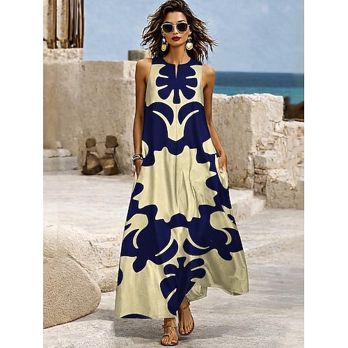 Per donna Abito maxi Vestito Estivo Abito da Spiaggia Abito Sottoveste Moda Essenziale Moderno Quotidiano All'aperto Spiaggia Vestibilità comoda Floreale Senza Maniche Scollo a V Blu Estate Primavera