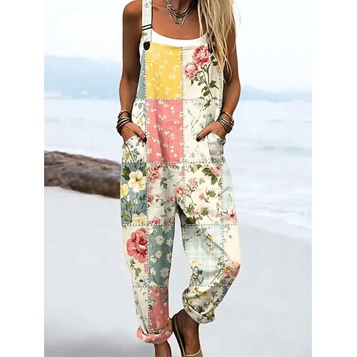 Per donna Tuta Attivo Floreale Senza Maniche Senza maniche Collo quadrato Patchwork Tasca Quotidiano Spiaggia Vestibilità comoda Rosa Rosso Verde Estate
