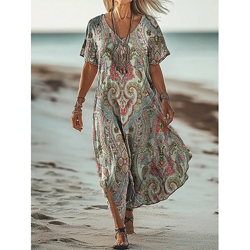 Per donna Abito maxi Vestito Estivo Vestito T-Shirt Abito a trapezio Vacanza Casual Spiaggia Uscire Vestibilità comoda Floreale Grafico Manica Corta Scollo a V Giallo Rosso Verde Estate Primavera