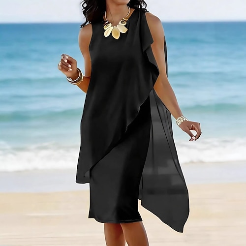 Per donna Abito al ginocchio Vestito in Chiffon Elegante Moda Moderno Spiaggia Festa serale Feste Vestibilità comoda Semplice Senza Maniche Girocollo Spalline Nero Rosa Viola Cachi Estate Primavera