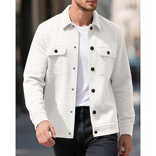 Per uomo Giacca a nido d'ape Giacca Camicia Giacca Casual Vacanza Quotidiano Traspirante Jacquard Tasca Primavera Autunno Semplice Moda Classico Bavero Regolare Nero Bianco Cachi Verde militare