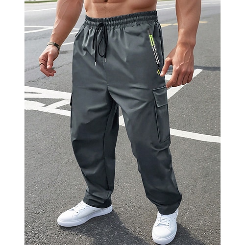 Herren Cargo-Hosen Hose Kordelzug Elastischer Bund Mehrere Taschen Einfach tragbar Outdoor Täglich Campen und Wandern Mode Klassisch Khaki Hellgrau